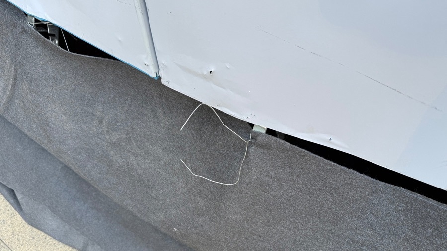 昨天下午,记者来到现场一探究竟。抬头眺望,这片围挡区域原是K11商场外围的一部分;低头细看,隐患就藏匿在脚边:为固定围挡的遮布,底端边缘区域缠满了一根根银白色的铅丝。细细数来,至少有6根铅丝“寒光闪闪”的锋利断口直接朝向人行道,正对着行人的小腿和脚踝位置。由于商场地处市中心繁华地段,人流量很大,不少路人步履匆匆,很难留意到这个“潜伏”在下方的危险。